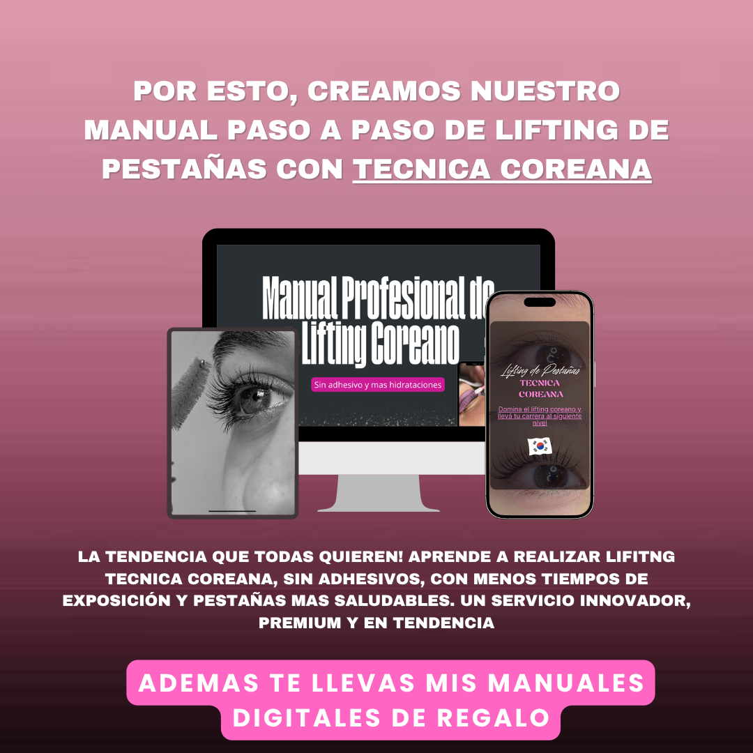 Formate con el Manual + Video paso a paso y aprendé desde cero la técnica de Lifting de Pestañas. ✨ Resultados duraderos y seguros.